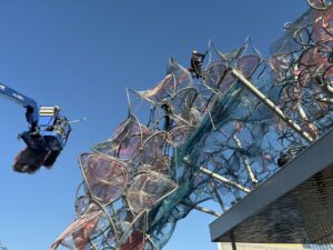 株式会社ギアミクスは、EXPO 2025 大阪・関西万博に出展する「パナソニック パビリオン〈ノモの国〉」において、パビリオン外装膜の取り付けおよびメンテナンス作業を実施いたしました。