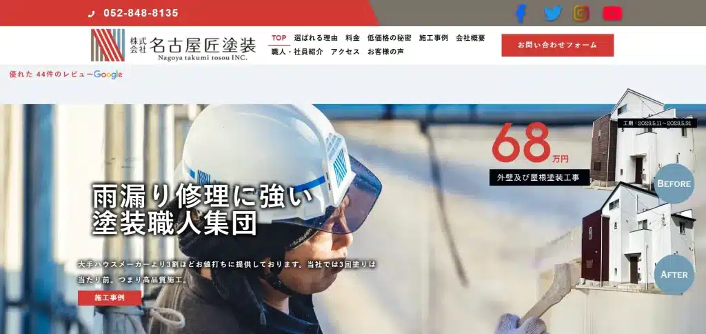 株式会社名古屋匠塗装は、塗装防水業者として10年以上携わってきた、国の指定業者認定を受けたプロフェッショナル集団です。