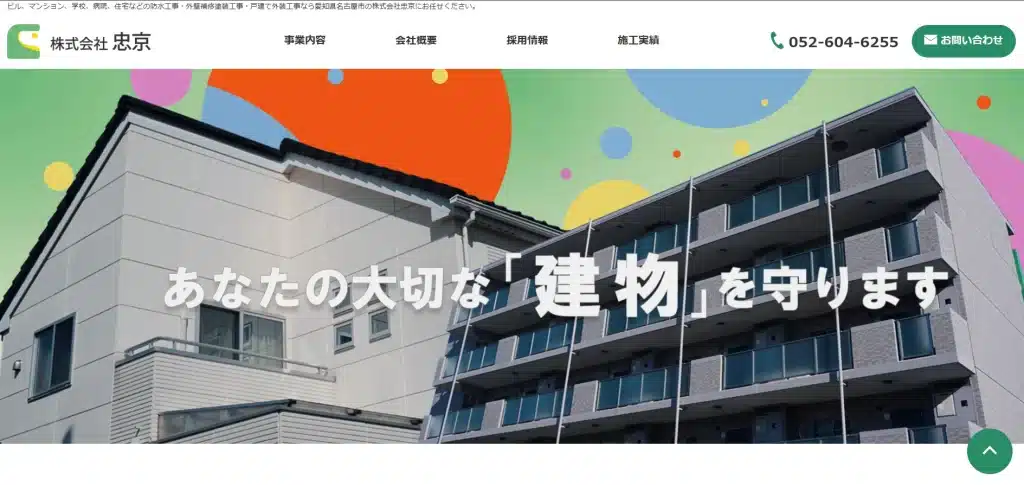 株式会社忠京は、 「品質・技術・安全・快適性の追求」を基本に、昭和52年の創業以来、防水工事を専門に手掛けてきた施工会社です。