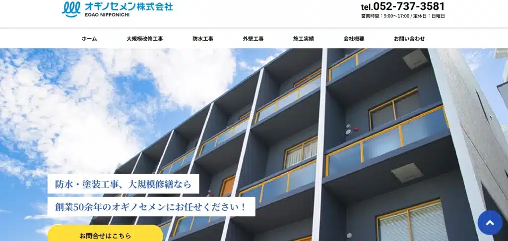 オギノセメン株式会社は、名古屋市を中心に現場調査から施工、アフターフォローまでを一貫して対応する、防水工事・塗装工事の専門業者です。