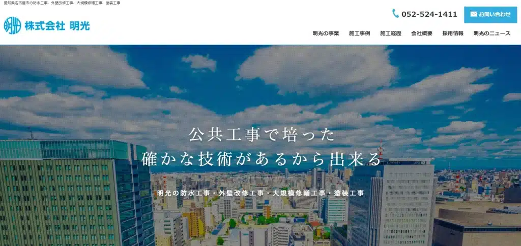 株式会社明光は、名古屋市内を中心に、防水工事・改修工事を手掛ける専門工事会社です。