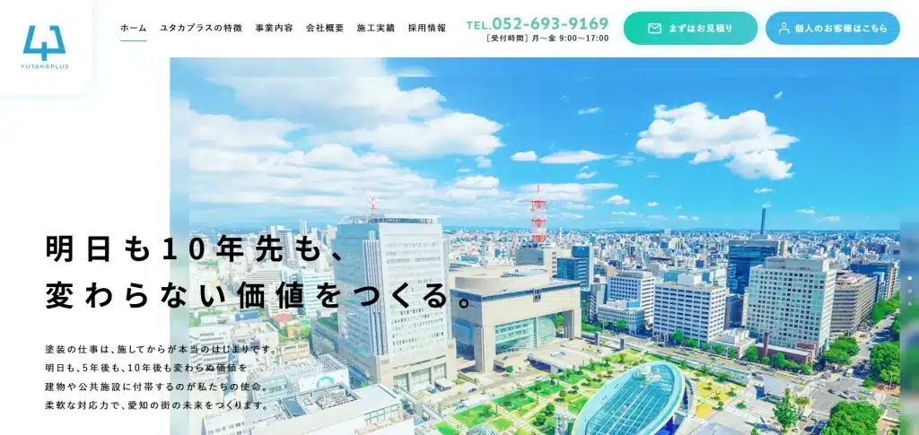 株式会社ユタカプラスは、塗装のプロフェッショナルとして8つの事業を一括で請け負う施工会社です。