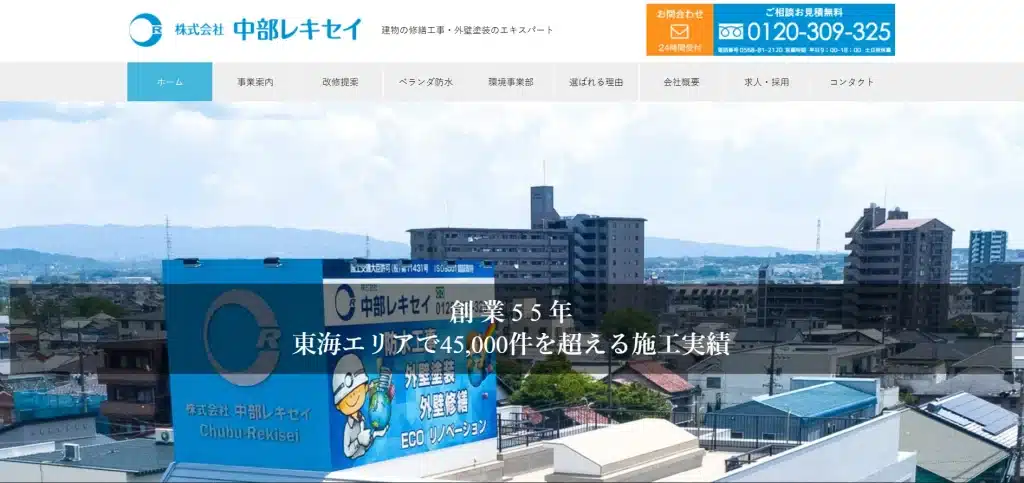 株式会社中部レキセイは、東海エリアで45,000件を超える施工実績を持つ、防水・外壁改修の専門会社です。