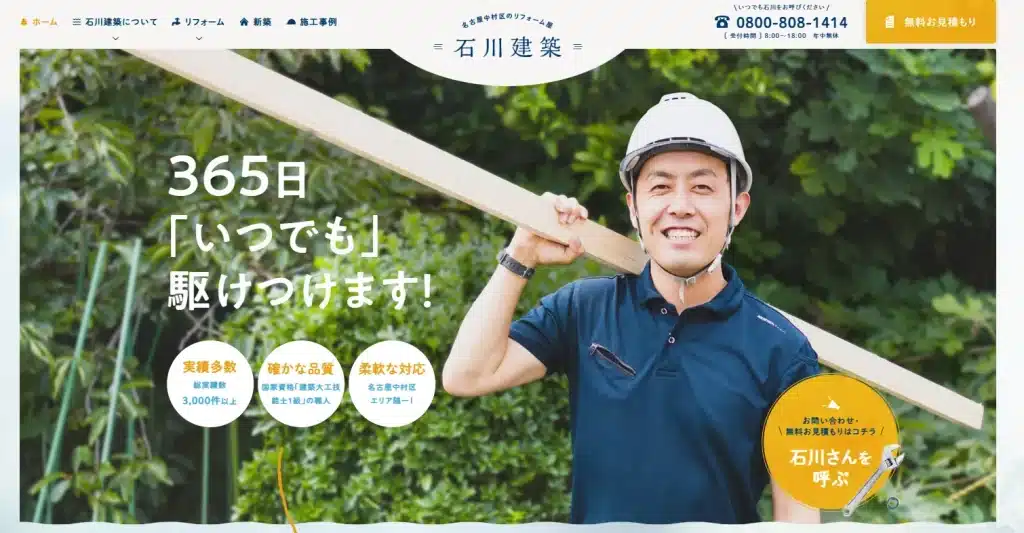 株式会社石川建築は、約3,000件のリフォーム工事や注文住宅を手掛けてきた工務店です。