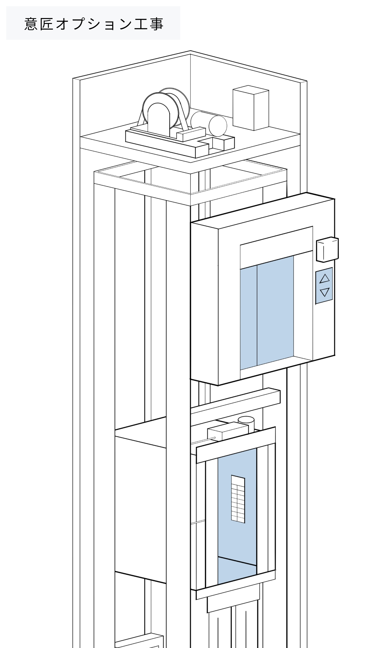 エレベーターは定期的な点検整備による性能維持管理を実施していても、他の建物設備と同様に少しずつ老朽化が進みます。老朽化したエレベーターを今後も安全に、安心してご利用いただくために、安全性・機能性・意匠面を考慮したリニューアル工事をおすすめ致します。